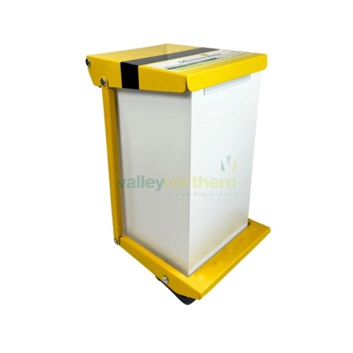 Fire Retardent Metal Waste Bin Sack Holder Soft Close. With Wheels. Orange and Black Tiger Stripe Lid 20 Litre