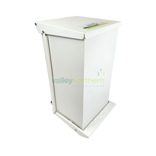 Fire Retardent Metal Waste Bin Sack Holder Soft Close. With Wheels. White Lid 70 Litre