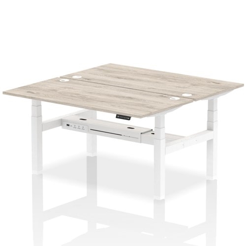 Air Back-to-Back 1600 x 800mm Height Adjustable 2 Person Bench Desk Grey Oak Top CP White Frame